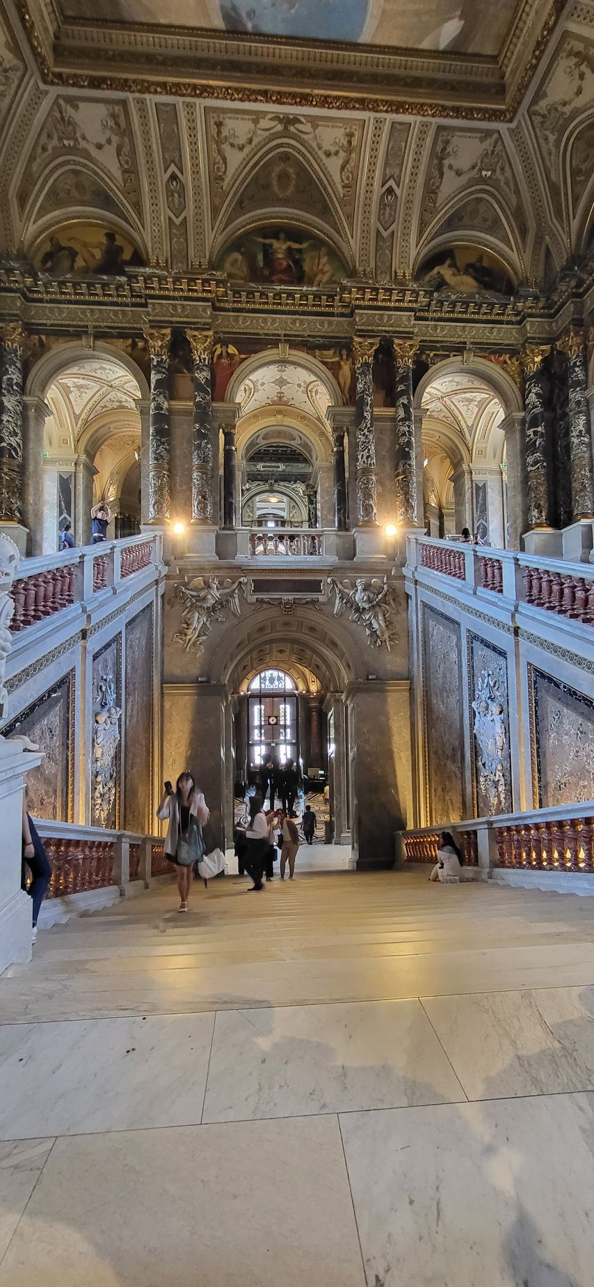 Gelukkig ging het in de rij vrij snel, voor ik het wist stapte ik de cabine in en stoof meteen op het bankje in het midden af. Zo, ik zat! Tergend langzaam kwam het rad in beweging en de eerste meters gingen nog wel. Uiteraard wilde ik foto's en filmpjes maken en dat kon ik gewoon vanaf mijn bankje doen. Toen we eenmaal over de helft waren werd ik echt beroerd. Wat had ik gedaan! Wat dacht ik nou, dat ik in mijn eentje wel even in een reuzenrad kon gaan zonder iemand die me gerust kon stellen! Dit was echt geen goed idee geweest, maar ik kon niet meer terug. Het zweet brak me uit en ik werd misselijk bij het idee dat we nog verder omhoog moesten. Af en toe stond het rad stil om nieuwe mensen binnen te laten, dat waren de minst enge momenten. Zodra het weer begon te draaien moest ik naar de grond kijken en tegen mezelf zeggen dat dat ding er niet voor niks al 126 jaar staat en dat het dus gewoon veilig is en goed gaat. Ik had mijn ademhaling nauwelijks nog onder controle en ik moest bijna huilen van angst. Paniek loerde echt om het hoekje, het ging allemaal maar net goed.