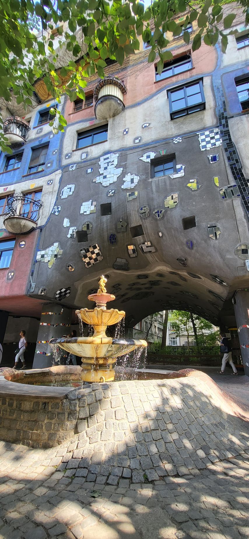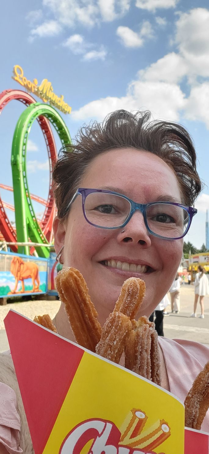 Na die helse rit vond ik dat ik wel een zakje Churros verdiend had. Ik had het kraampje al zien staan en ik trakteerde mezelf op die lekkernij. Terwijl ik stond te wachten, want ze werden vers voor me bereid, raakte ik even aan de praat met de dame van het kraampje. Een stortvloed aan woorden kwam eruit en ik vertelde inmiddels lachend om mijn stommiteit mijn avontuur in het reuzenrad. Mevrouw vertelde me dat ik zeker niet de enige ben die er zo uit komt en daar konden we samen hartelijk om lachen. Terwijl ik zat te kijken naar 's werelds grootste mobiele achtbaan at ik mijn gefrituurde deegslierten op en ik bedacht me dat ik ook nog wel even naar het Hundertwasserhaus kon gaan want dat lag hier in de buurt.